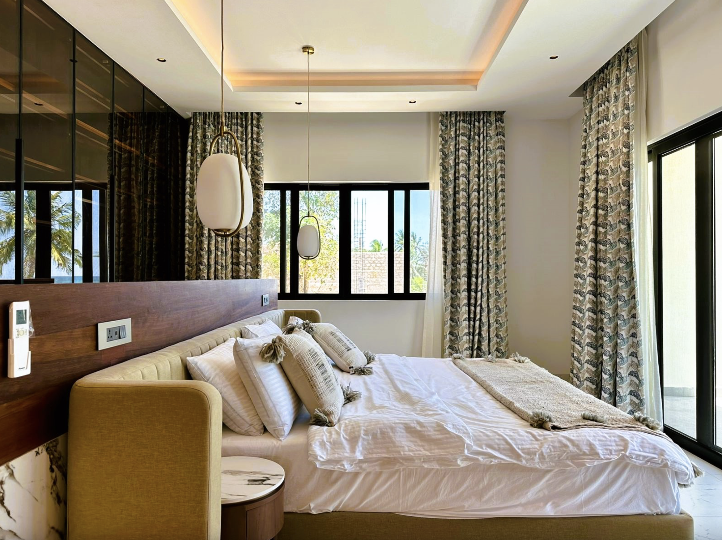 Every detail is thoughtfully styled for comfort and calm. The interiors are cosy yet sophisticated, as each en-suite bedroom has its own character, and practically every area opens up to those stunning ocean views. While the villa is self-catering, a private chef is on hand to turn your meals into memorable moments, so it feels like home with luxury service. On-site staff and a light concierge make unwinding easier, whether you want help arranging a boat trip or simply enjoying the quiet. All this, yet you’re still a short drive from Kilifi Creek, a local supermarket, and within reach of Malindi Airport