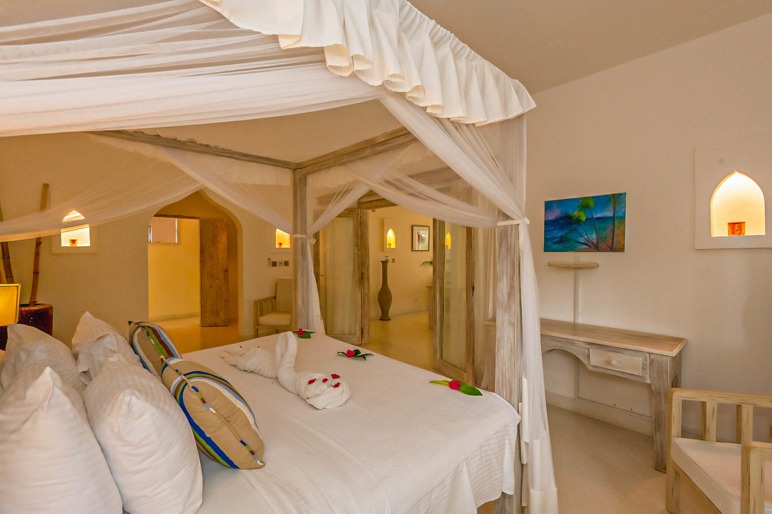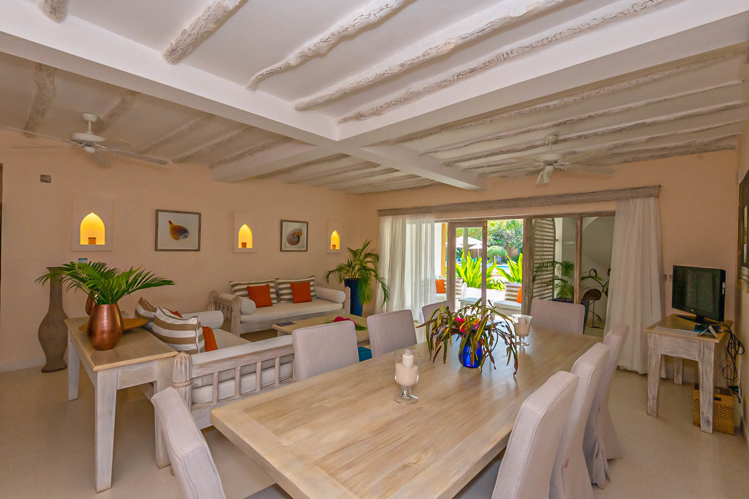 This villa at Medina Palms is a refined example of modern coastal living, where crisp whites, soft greys and deep navy tones draw on Mediterranean and Swahili influences. Designed for private comfort and strong rental potential, the home features open-plan living with textured plaster, bleached timber and matte stone finishes, plus full-height sliding doors that open to an al fresco terrace with uninterrupted ocean sightlines.