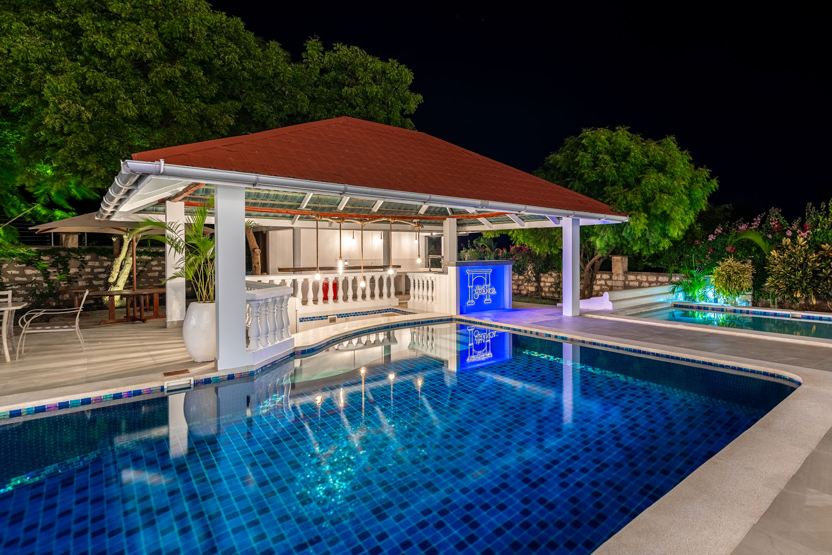 Guests are treated to chef-prepared breakfast and dinner daily, alongside full servicing for a truly carefree stay. Outdoor spaces invite relaxation and connection, from a sparkling swimming pool with a poolside bar and separate kid’s pool to a BBQ area perfect for al fresco dining. Wellness and leisure are at the heart of the experience, with a dedicated massage room and fully equipped gym.